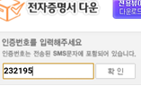 • 전자증명서 다운로드 창에 확인한 인증번호 입력